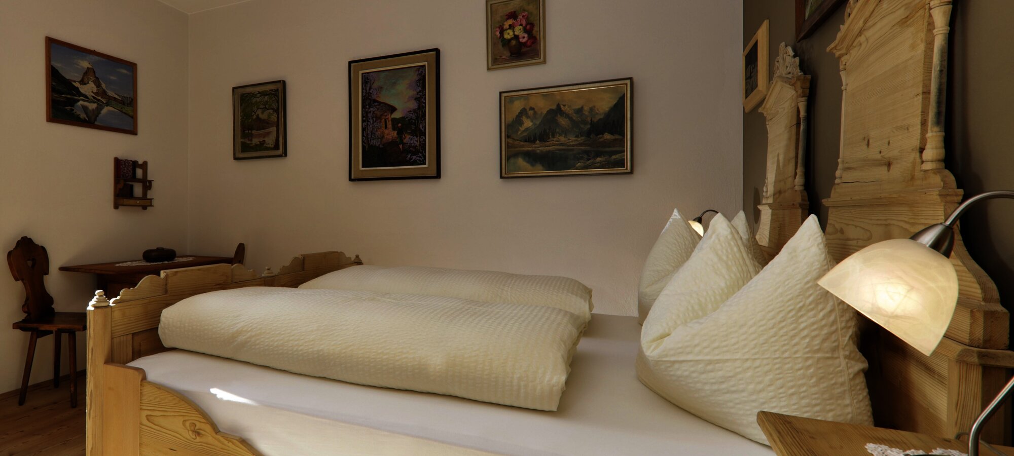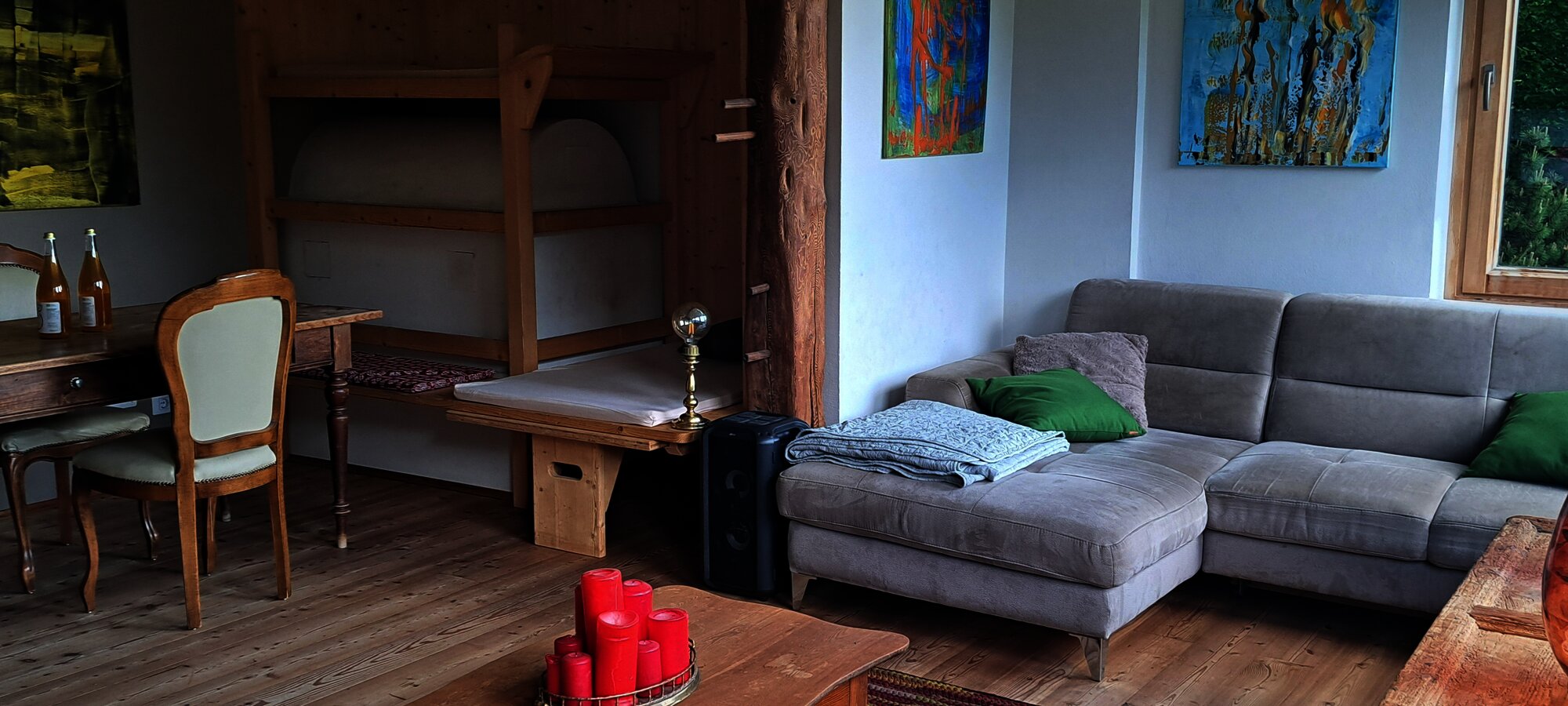 Die Wohnungen wurden von uns liebevoll eingerichtet. Böden und Fenster sind aus eigenem heimischen, naturbelassenen Lärchenmassivholz, Türen und Küchenzeile aus heimischer Fichte.